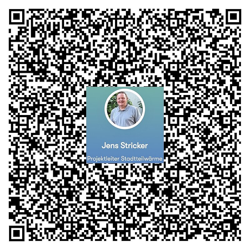 Um Ihnen eine einfache Kontaktaufnahme zu uns zu ermöglichen, haben wir die Kontaktdaten der Projektleitung Stadtteilwärme Wächtersbach in einen QR-Code gepackt, den Sie einfach mit Ihrem Smartphone abfotografieren können und schon haben Sie die kompletten Kontaktdaten von unserem Projektleiter Herrn Stricker auf Ihrem Display!